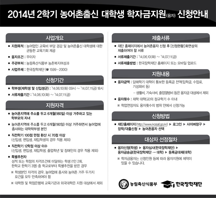 | 2014학년도 2학기 농어촌출신대학생 학자금지원 안내 | ||
